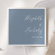 These simple, modern wedding napkins feature white text aligned to the right margin on a dusty blue background. Add the names of the bride and groom in stylish handwriting calligraphy.
