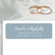 This simple, modern wedding return address label features the couple's names in stylish white script, with two lines for the address below in white sans serif font on a dusty blue background.