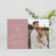 Announce your upcoming wedding in style with this trendy Modern Script Dusty Rose photo save the date card! The design features "Save the Date" displayed in trendy white calligraphy with a dusty rose background. Personalise the front of the minimalist save the date with your names, wedding date, location, and vertical engagement photo. The back of the card displays a horizontal photo with your wedding website shown below. The chic dusty rose save the date the perfect choice for modern weddings.