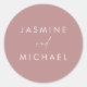 Seal your wedding envelopes with these simple and stylish envelope seals! The design features your names in modern white lettering complemented by a handwritten script with a dusty rose background. These chic sage green wedding stickers are perfect for sealing envelopes, adding to wedding favours, and more!