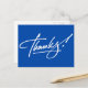 Modern handwritten script Thank You postcards in Electric Blue. Perfect for Weddings, Birthdays, Christmas, Showers or any other occasion. Electric Blue colour 'Thank You' postcards, if required, choose any other colour or add your own printed text, address or company name from the "Customise It" tab.