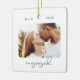 Modern Script Elegant Engagement Photo Keepsake Ceramic Ornament