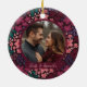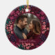 Celebrate love in full bloom with this personalized engagement keepsake ornament, featuring a romantic floral design in rich shades of pink, purple, and burgundy. The front showcases a cherished photo framed by elegant botanicals, with space to add “Engaged” and the year in graceful script. On the back, couples can include their names alongside the same photo, creating a timeless memento of this joyful milestone.