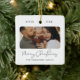 This modern script photo Merry Christmas ornament features two of your favourite photos (on the front and back) of your new baby, your family, or your new house as well as your family name and date.