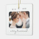 Modern Script Elegant Merry Married Wedding Photo Ceramic Ornament