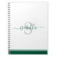 Simple modern script monogram personalised notebook for your journalling. The elegant emerald green stylish script matches the line design in colour but offsets it in style, creating a fun twist to the minimalist look.