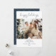 Modern Script Elegant Navy Blue Christmas Photo Holiday Card