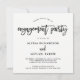 This modern, black and white engagement party invitation features trendy script typography and a simple and stylish layout.