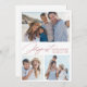 Modern minimalist happy holidays card features elegant trendy script and typography in red colour, with personalised three family photo, simple and unique season's greeting cards.