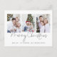 Modern Script Family 3 Photos Merry Christmas Postcard