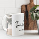 Custom-designed coffee mug featuring "Daddy" modern hand brush script design.