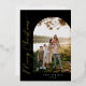 This holiday card features a simple, elegant design and an arched photo with gold foil wording. This gorgeous modern minimal Christmas card allows a section to upload your own perfect picture to the font & back.