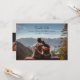 Modern handwritten style font Save the Date, script design with modern text above free space on engagement photo. Text can be moved and font colours can be changed with further customisation. Back of this photo offers space for an additional photo and can be changed to any colour.