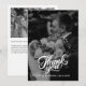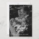 The typography features a striking, large-scale white calligraphy script for the words "Thank you!" in a flowing, handwritten style that pops vividly against your chosen photograph. Below the main message, you can easily personalise the card with the names of the couple and your wedding date in a clean, sophisticated sans-serif font. This minimalist and professional aesthetic is a timeless way to share your joy with friends and family.