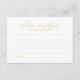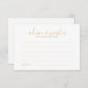 This advice card features title in gold modern calligraphy font style and details in gold modern sans serif font style on white background.