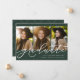 Modern script graduate 3 photo green graduation announcement