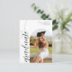 A modern elegant graduation photo invitation postcard designed with a photo in arch shape and a script lettering of "graduate". Customise the party details at the back.