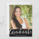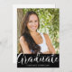 Invite guests to your graduate's graduation party with this photo invitation featuring one photo and elegant calligraphy script typography in your choice of background colour (shown with white text on an editable black background). Party details are on the back. ASSISTANCE: For help with design modification or personalisation, transferring the design to another product or if you would like coordinating items, contact the designer BEFORE ORDERING via the Zazzle Chat MESSAGE tab or email makeitaboutyoustore@gmail.com.