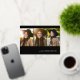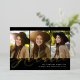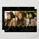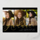 A playful but simple script graduate in foil sits at the bottom of 3 vertical photos. The custom text includes room for the graduate's name and also school and year details. The neutral black backer has a simple grid pattern, and the colour can be changed by clicking "customise further." The centre has room for graduation party invitation text or it can be left blank. Announce your graduate's accomplishment to friends and family with this design!