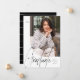 Celebrate your graduate with this modern photo graduation announcement in a black and white colour scheme. Featuring a unique photo shape with a curved edge on the front, this graduation announcement also has a bold modern script "graduate" and customisable text for the grad's name and year. The black back features and coordinating stripe, a second photo and customisable text for future plans, grad party invite and more. This original graduate announcement by Lea Delaveris Design is also available as a graduation party invitation and is part of a collection of graduation announcements, party supplies, decor, gifts and more. Find more styles and colours in the collection. Also available as a digital graduation announcement download!