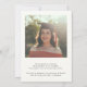 A Modern Script Graduate Simple Photo Graduation Announcement card with handwritten font reading "And so the adventure begins" with a faux gold, elegant grad cap illustration, as well as a portrait photo on the back with name and graduation details. Click the edit button to customise this design.