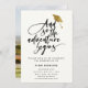 A Modern Script Graduate Photo Graduation Party Invitation with handwritten font reading "And so the Adventure begins" with name and graduation details. The back has 1 full frame photo. Click the edit button to customise this design.