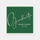 Paper napkins feature the word GRAD along with your graduate's name and class year in chic white lettering on green or any of our done-for-you school colours.