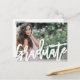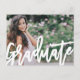 Modern script graduation announcement postcard. Completely customise all the information and photo .