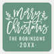 Modern Script Green Merry Christmas Custom Square Sticker