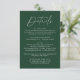 Simple and elegant wedding details card featuring a handwritten white script mixed with modern lettering against a dark green background. Personalise the minimalist wedding details card with your wedding details such as reception information, hotel accommodations, wedding website, etc. The chic forest green wedding details card is perfect for modern weddings.