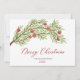 Modern Script Greenery Red Berries Christmas Holiday Card