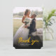 A great and thoughtful way to thank your friends, family, and coworkers who graced you their presence on your your wedding day with this modern photo thank you cards with script hand lettered gold effect "thank you". Photos on both the front and the reverse of this card