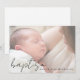 This minimalist, elegant Baptism invitation card features a single horizontal photo, a "baptism´´ header in the modern, handwritten script, and your baby´s name in elegant typography at the bottom. The reverse features all details. Customize this minimalist, elegant baptism invitation card by clicking on the ´´Edit´´ button and replacing the template text and photo with your own!