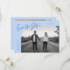 Modern and stylish save the date card featuring a hand lettered script text that says "save the date." One photo in the font and one on the back. The background is icy blue.
