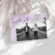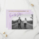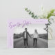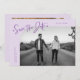 Modern and stylish save the date card featuring a hand lettered script text that says "save the date." One photo in the font and one on the back. The background is lilac.