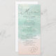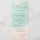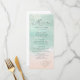 Beautiful turquoise abstract watercolor sparkling ocean wave and hearts in the sand beach background, toped with stylish script and elegant serif font, modern and simple. Great wedding menu cards for nautical beach wedding, tropical destination wedding, coastal ocean themed wedding in summer.