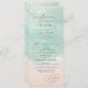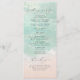 Beautiful turquoise abstract watercolor sparkling ocean wave and hearts in the sand beach background, toped with stylish script and elegant serif font, modern and simple. Great wedding programs for nautical beach wedding, tropical destination wedding, coastal ocean themed wedding in summer.