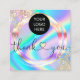 say big thank you and show your love and customer appreciation with this modern script card with the heart and holographic background, inviting them to purchase again, leave a review and tag you on social media. You can change the colours of the heart, text and icons to fit your branding