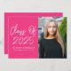 Modern Script Hot Pink 2025 Photo Graduation Party Invitation