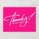 Modern handwritten script Thank You postcards in Hot Pink. Perfect for Weddings, Birthdays, Christmas, Showers or any other occasion. Hot Pink colour 'Thank You' postcards, if required, choose any other colour or add your own printed text, address or company name from the "Customise It" tab.