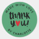 A personalised "made with love, Thank You" sticker with a green background. Make it yours by adding your own name. A pretty finishing touch to thank your customers for purchasing from your small business. Comes in a variety of colours. Designed for you by Blackberry Boulevard.