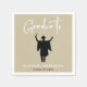 Custom black, gold and white napkins for his graduation party party featuring a silhouette illustration of a male graduate celebrating in his cap and gown, "Graduate" in a modern white script and his name and class year in simple typography.