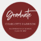 Modern Script Maroon White Graduation Classic Round Sticker