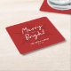 Modern Script Merry & Bright Snowflakes Christmas Square Paper Coaster