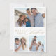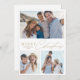 Modern minimalist merry Christmas card features elegant trendy script and typography in gold colour, with personalised three family photo, simple and unique greeting cards.