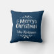 Modern customisable Merry Christmas script throw pillow. The design features the text "Merry Christmas" in white typography with white holly berries and swirl accent elements. Makes for the best personalised gift for yourself, your friends, family members and even neighbours. We have 35+ more Christmas pillows in our collection that you will definitely love. Please check it out and get the best Christmas gift with special wishes for your special people. Merry Christmas!