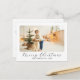 Modern elegant minimal holiday postcard features one large of your favourite photo in curve corner frame, black script calligraphy "Merry Christmas" with classic serif lettering. Add your custom message or delete the text for handwritten message on the back of the postcard.