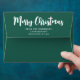 Add a stylish touch to holiday cards with modern script Merry Christmas return address envelopes. The greeting on this template is simple to personalize with any wording, such as Happy Holidays, Seasons Greetings, or Happy New Year. As an option, change the script typography greeting to your name, and use the rest for the return address only. The green and white design features trendy handwritten script calligraphy and minimal classic typography. Elegant customized envelopes add a beautiful detail to Christmas cards and holiday party invitations. Merry Christmas!