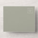 This simple modern all-in-one wedding invitation features white text on a sage green background. Add the names of the bride and groom in stylish handwriting calligraphy and the details in sans serif font. The detachable RSVP features sage green text on a white background. Add your return address in white on the sage green exterior flap and back of the RSVP.