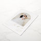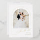 Minimalist save the date card features modern script and chic arch frame in real gold foil, with couple's photo, elegant and simple, great for modern classy wedding.